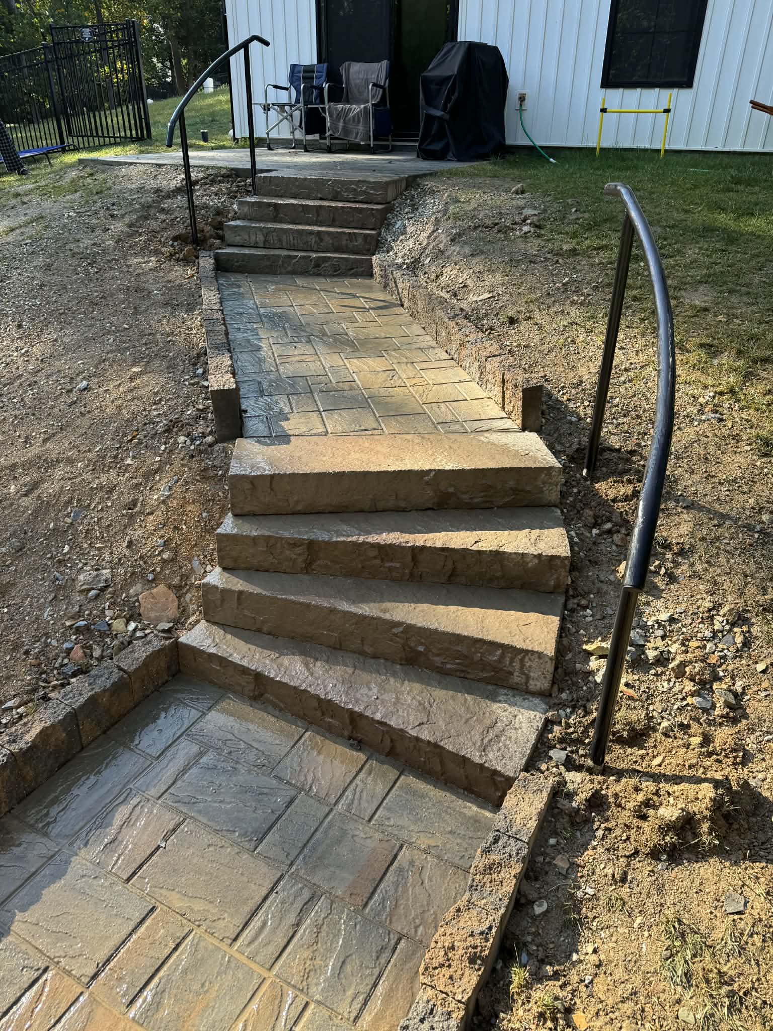 Whether the railing is needed for safety compliance or added support, we ensure it blends naturally with your hardscape design.